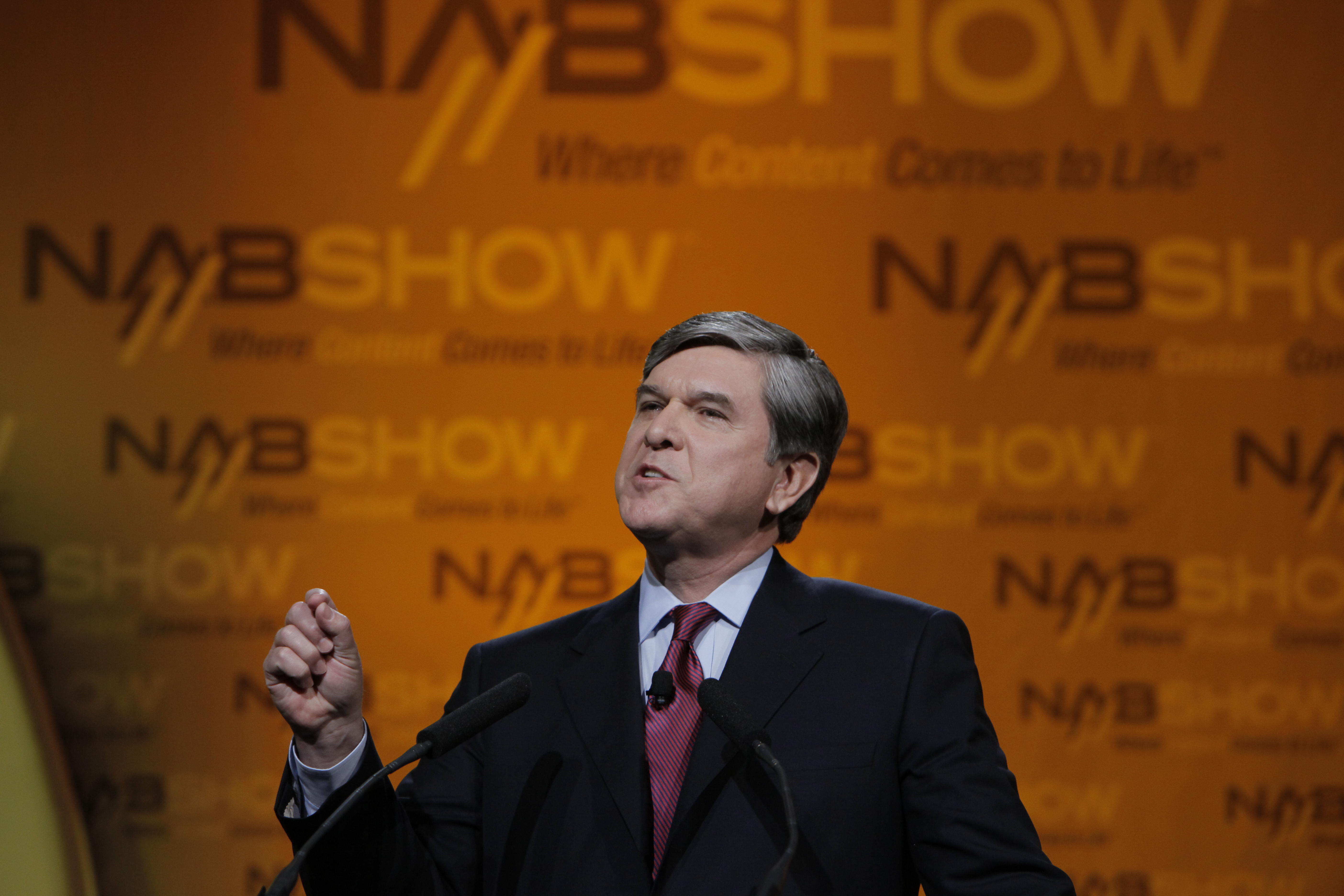 NAB President and CEO Gordon H. Smith delivers his inaugural State of the Industry keynote address during the 2010 NAB Show.