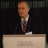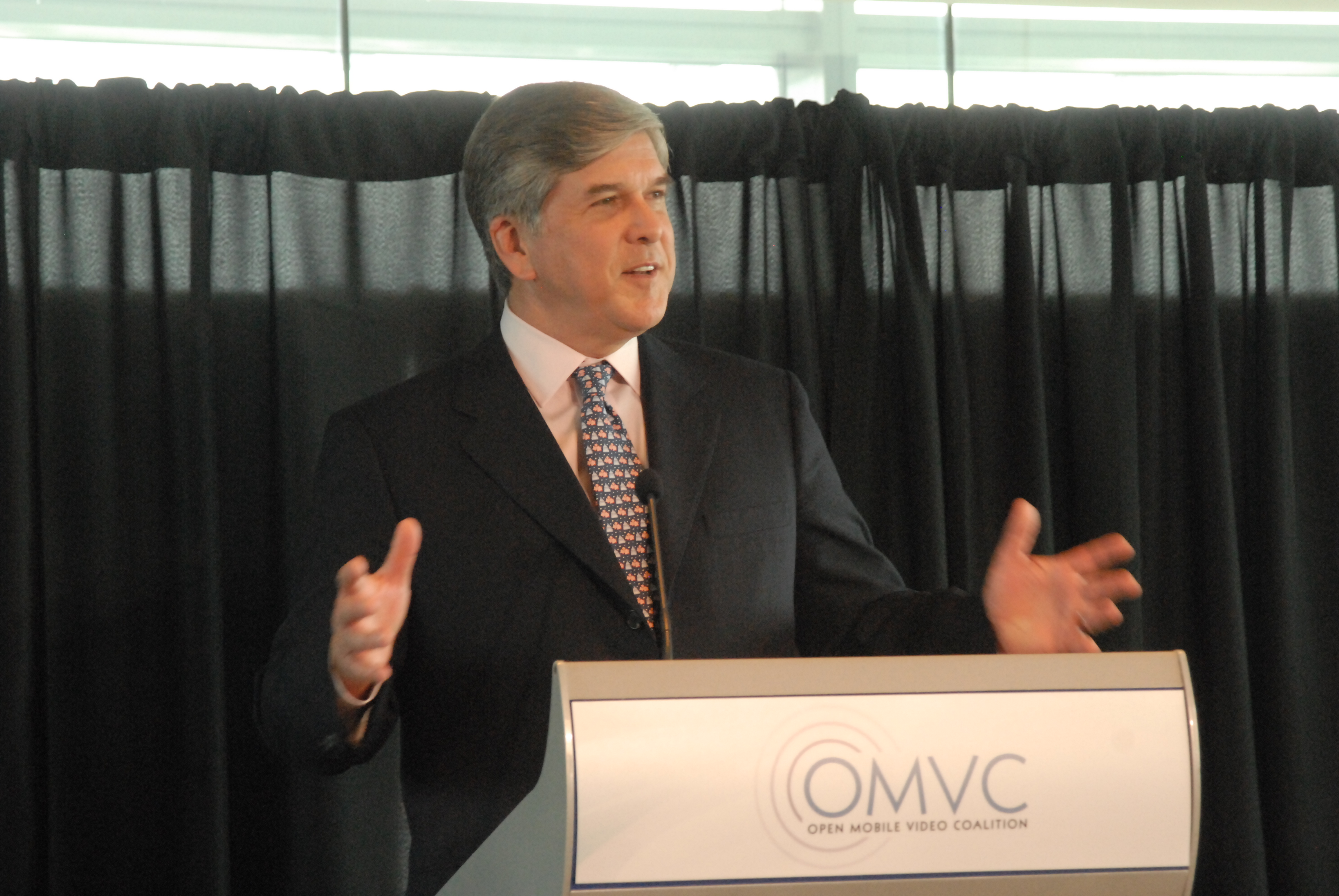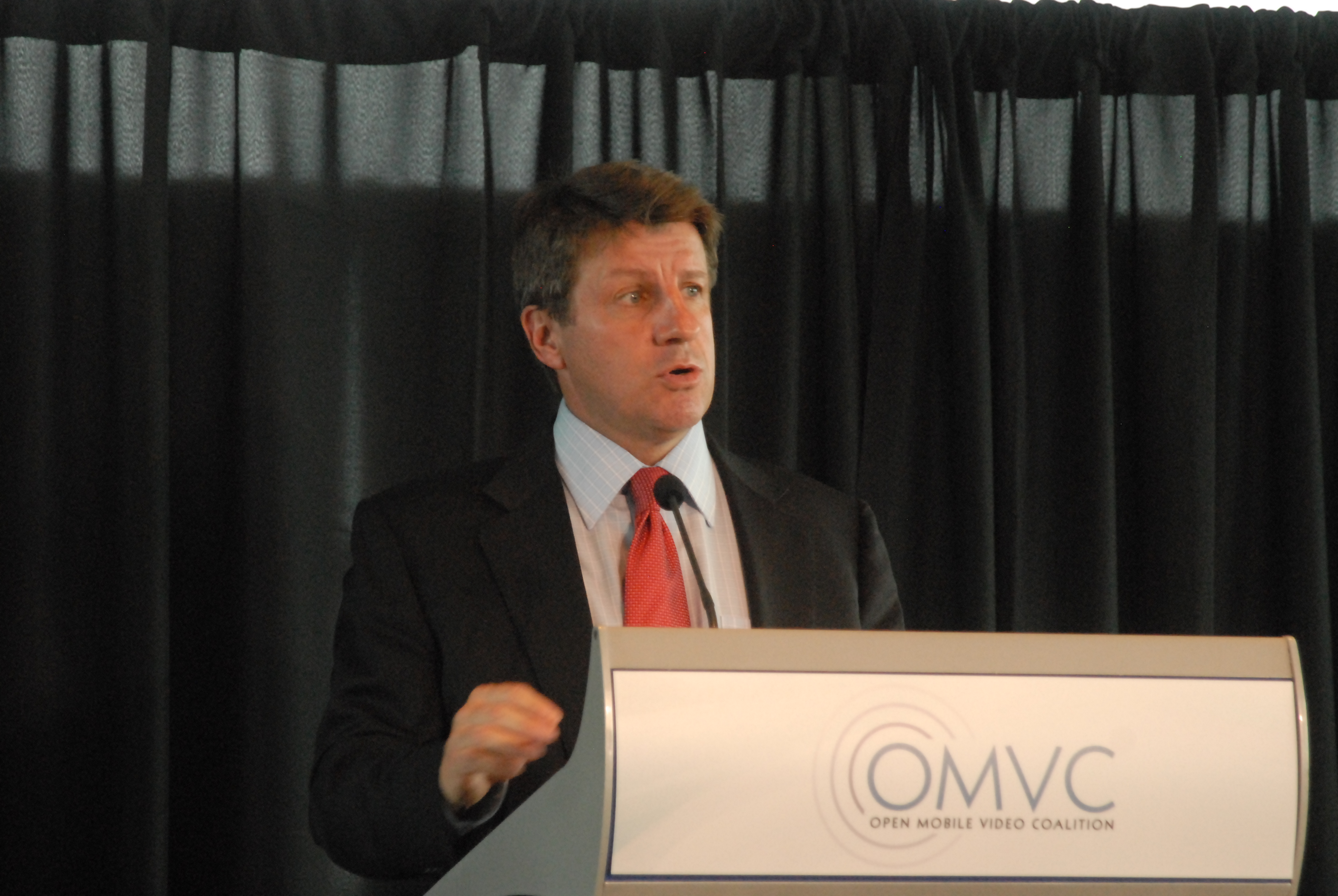 Jack Abernethy, CEO of Fox Television Stations, speaks during the mobile DTV showcase sponsored by the Open Mobile Video Coalition.
