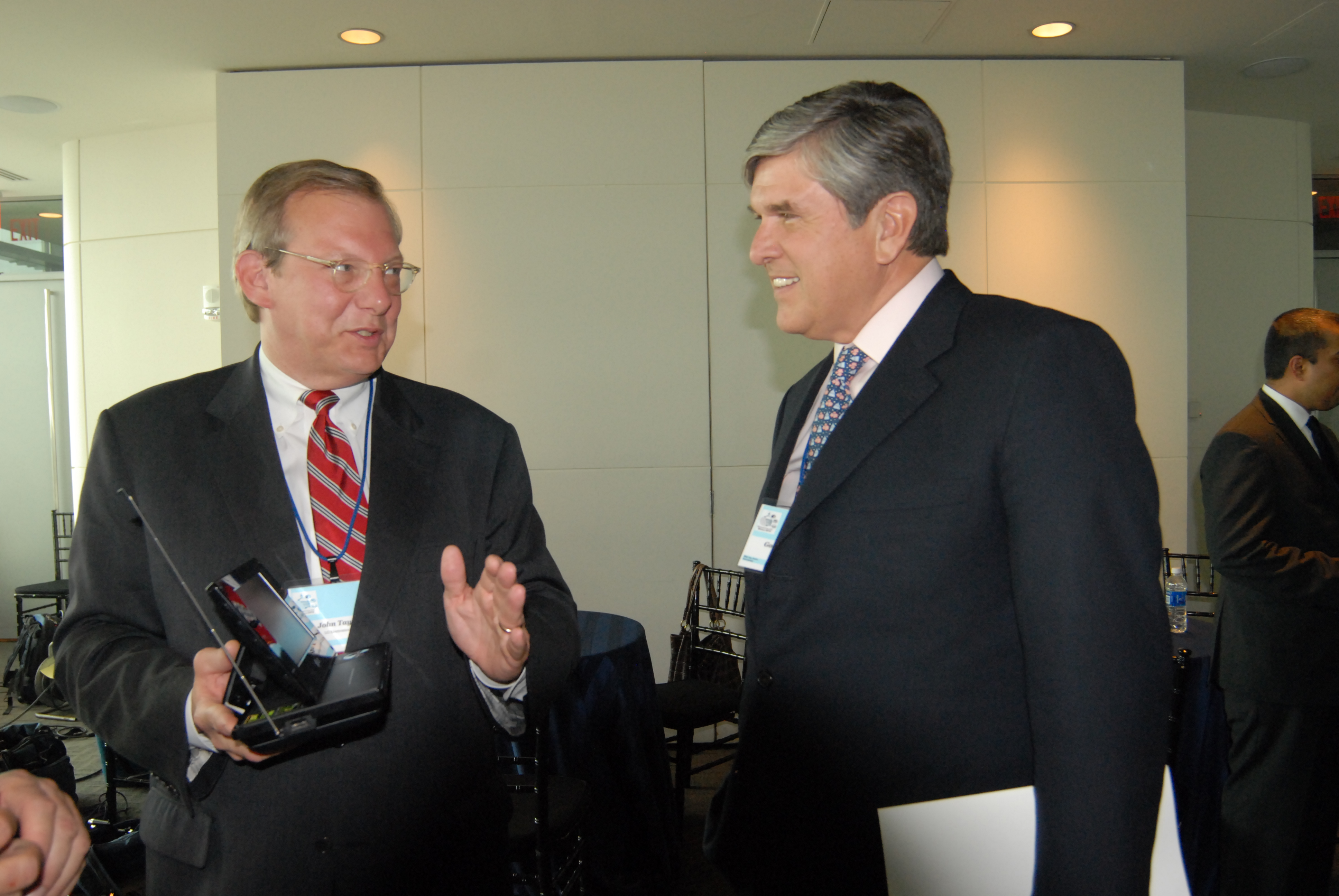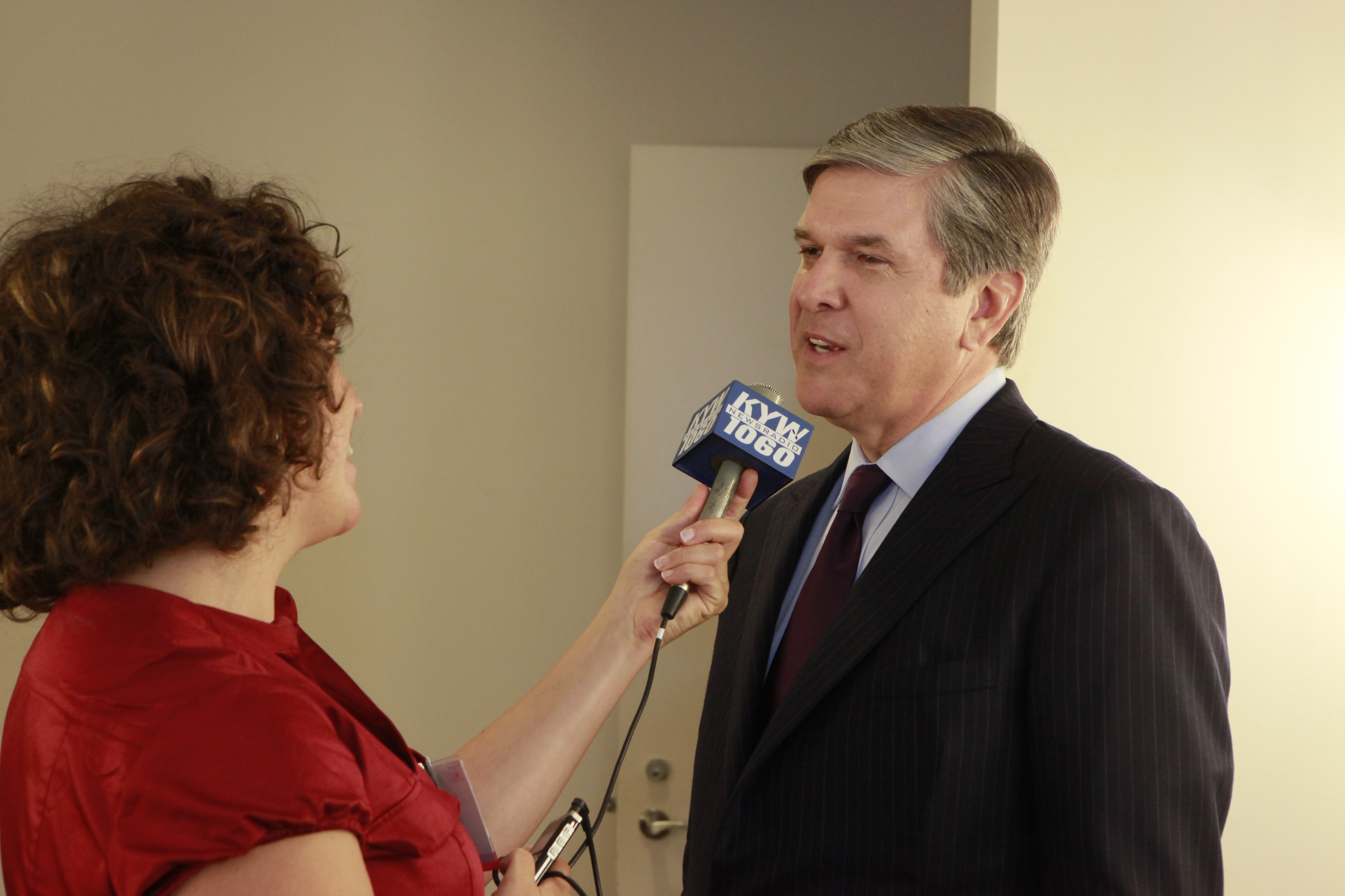 NAB President and CEO Gordon Smith is interviewed by KYW News Radio during the 2009 NAB Radio Show in Philadelphia.