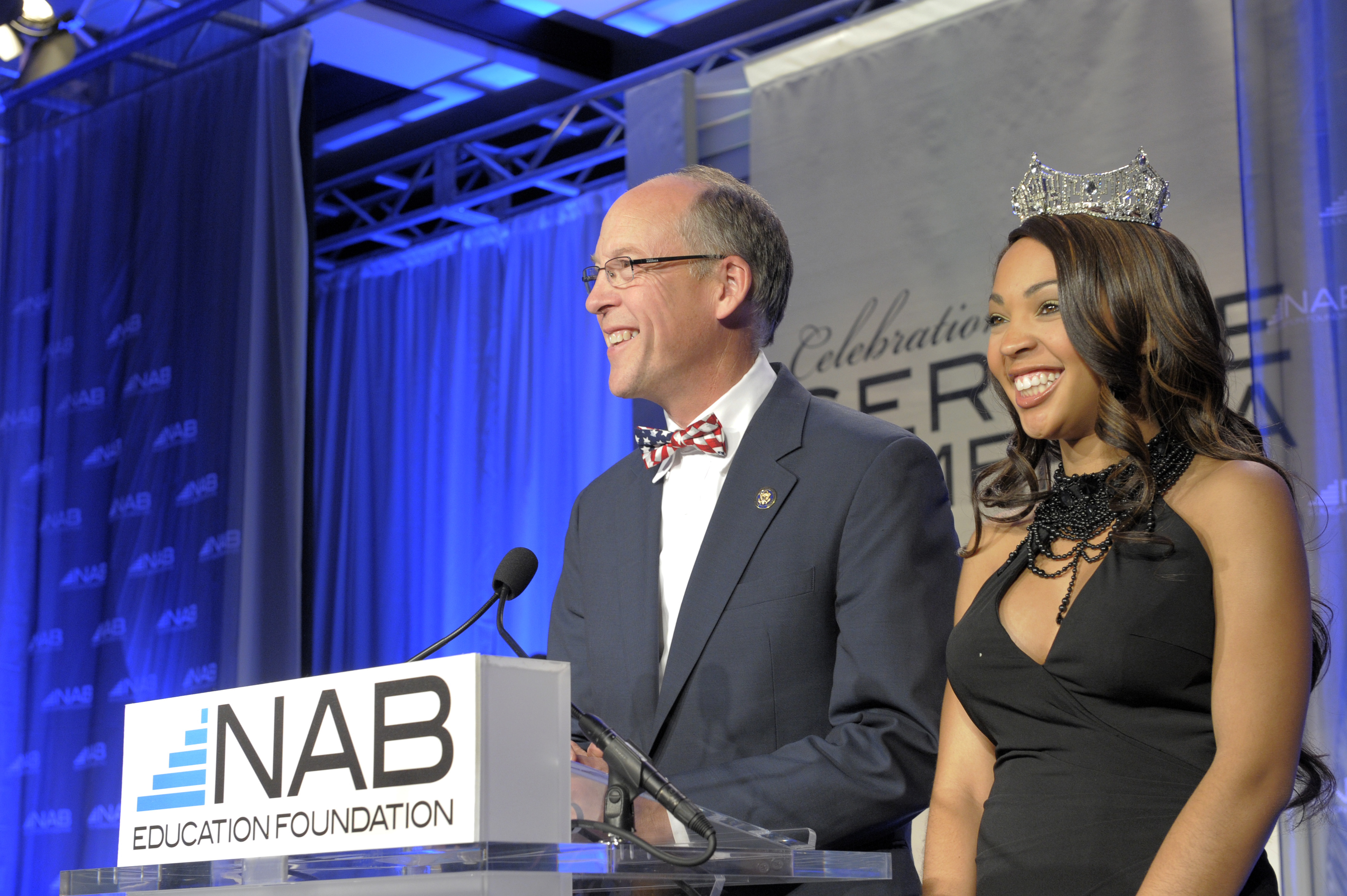 Rep. Greg Walden (OR-02) and Miss America 2010 recipient Caressa Cameron present an award during the 2010 NAB Education Foundation's Celebration of Service to America Awards. The event honors radio and television broadcasters for their dedication to community service.