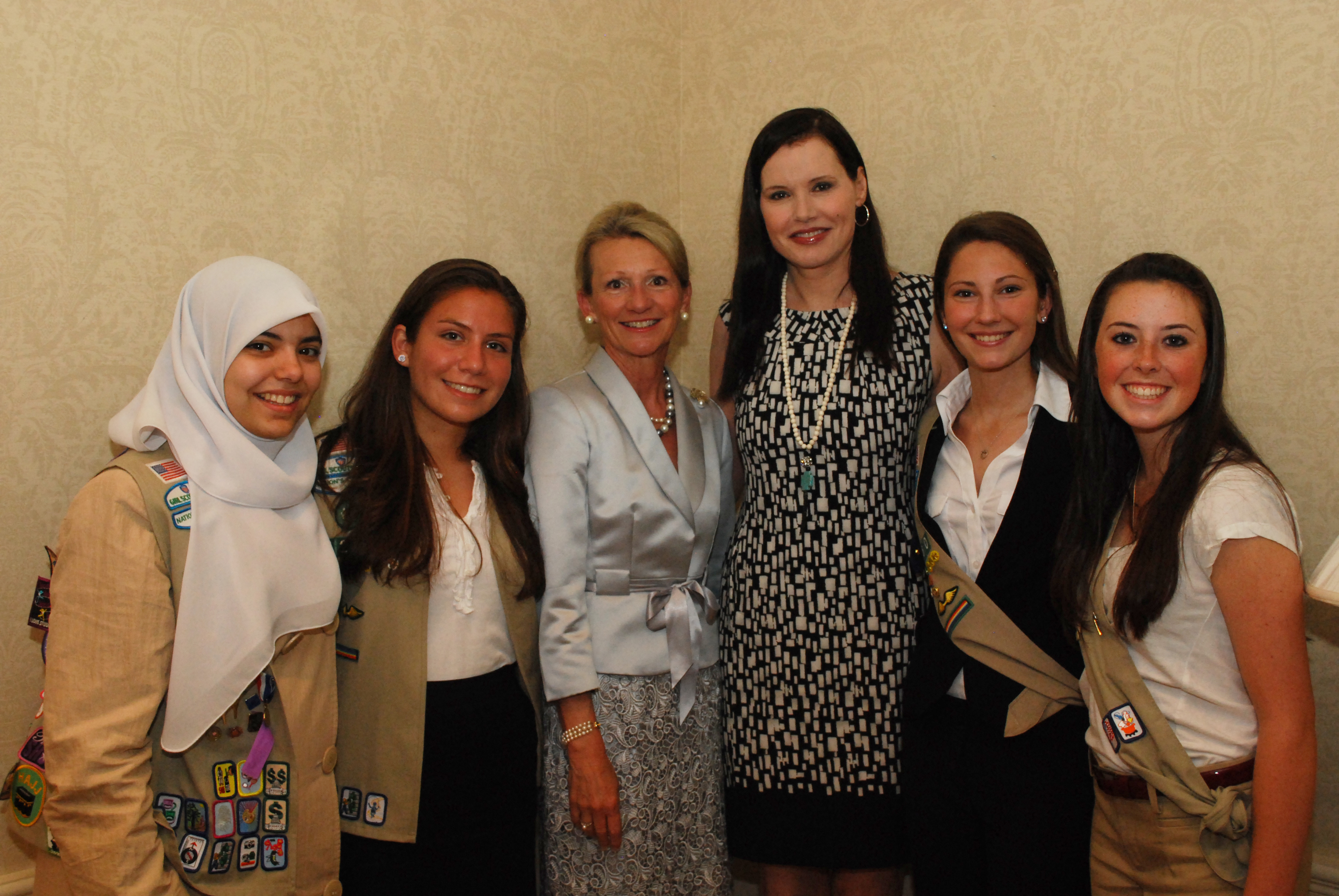 Former FCC Commissioner Deborah Taylor Tate (left), Academy Award winning actress Geena Davis (center), with Girl Scouts