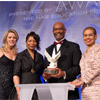 Jim Watkins, GM of WHUR and Angie R. Reese-Hawkins, CEO of YMCA of Washington, DC, join Congresswoman Eleanor Holmes Norton and Deborah Norville on stage to accept NABEF's Service to Children Award for Radio