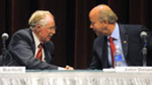 During the 30-minute event, Rep. Mike Michaud and Republican challenger Kevin Raye discussed job creation, energy policy, taxes, poverty and sequestration. The Affordable Care Act became a central part of both the economic and health care portions of the debate. |