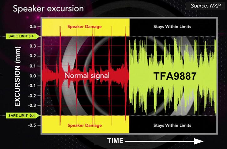 NXP TFA9887 IC allows designers to break this rule. Adaptive excursion