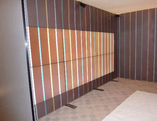 For this demo, six 1080p LCD video-wall panels are countersunk