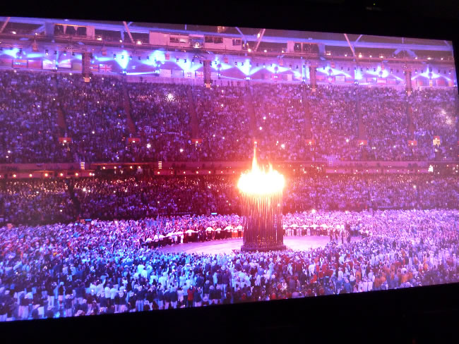 an Olympics swimming event as seen on NHK Super HiVision screen,