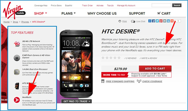 Virgin Mobile. A screen shot from the Virgin Mobile web page is