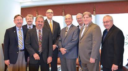 Shown left to right: Al Grossniklaus, Director of Engineering & Operations, Dispatch Broadcast Group; Robert Seidel, VP, Engineering and Advanced Technology, CBS Television; Sam Caputa, Chief Engineer, Emmis Communications – St. Louis; Jeff Littlejohn (Committee Chairman), Executive VP – Engineering and Systems Integration, Clear Channel Media and Entertainment; Roswell Clark, Director Technical Operations, Cox Media Group - Tampa/Orlando Radio; Ken Beck, VP Technical Operations and NTS Programming, Entercom Communications; Larry Oaks, Vice President of Technology, Local Media Group, Meredith Corporation and Fred Baumgartner, Ennes Educational Foundation Trust, Society of Broadcast Engineers. Not shown: Gary Nadler, General Manager, Telecommunications and Affiliate Services, ABC TV Network, Broadcast Operations and Engineering. |