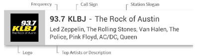 is displayed in the NextRadio app station guide (see example above).