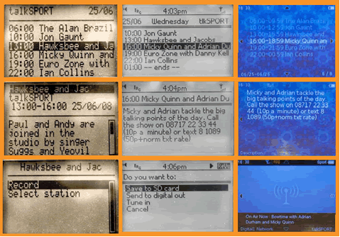 some screen shots of various DAB radios as they receive and display