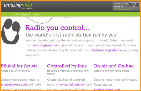 a demo voice track to the Amazing Radio Web site, http://amazingradio.co.uk/.