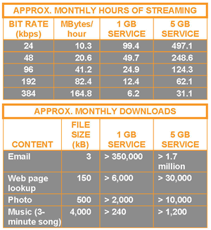 annual subscription ($29 for 1 GB per month, $59 for 5 GB per