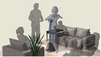 for each of three musicians. The sound is reproduced through a