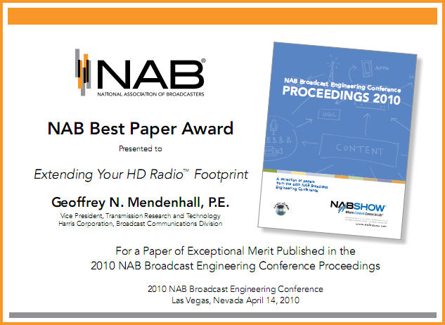 first ever NAB Best Paper Award for "...a paper of exceptional