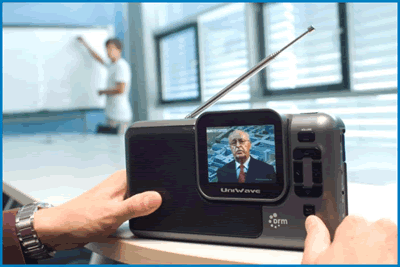 BBC content displayed on a NewStar DRM receiver (shown in the photo).