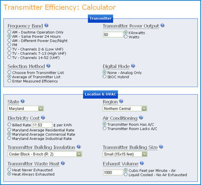 Efficiency Calculator that broadcasters can use to predict approximate