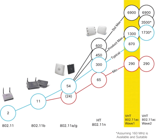 which have previously been limited to 20 MHz and 40 MHz. The 802.11ac